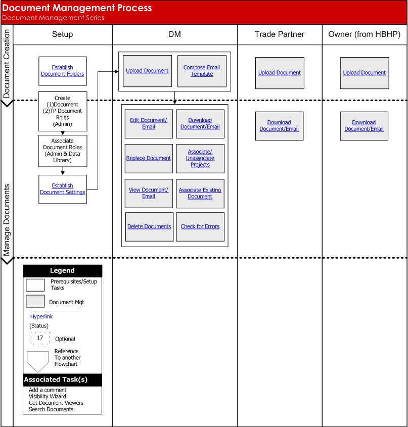 The following flowchart demonstrates the tasks and decision points for Document Management.